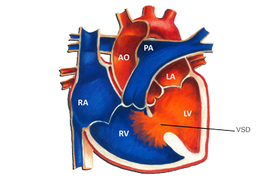 ΜΕΣΟΚΟΙΛΙΑΚΗ ΕΠΙΚΟΙΝΩΝΙΑ, έλλειμμα μεσοκοιλιακού διαφράγματος, με αποτέλεσμα την επικοινωνία μεταξύ δεξιάς και αριστερής κοιλίας. Είναι η συχνότερη συγγενής ανωμαλία σε βρέφη και νεογνά, (ποσοστό 20% των συγγενών καρδιοπαθειών). Έχει συχνότητα εμφάνισης 1.5-3/1000γεννήσεις. |